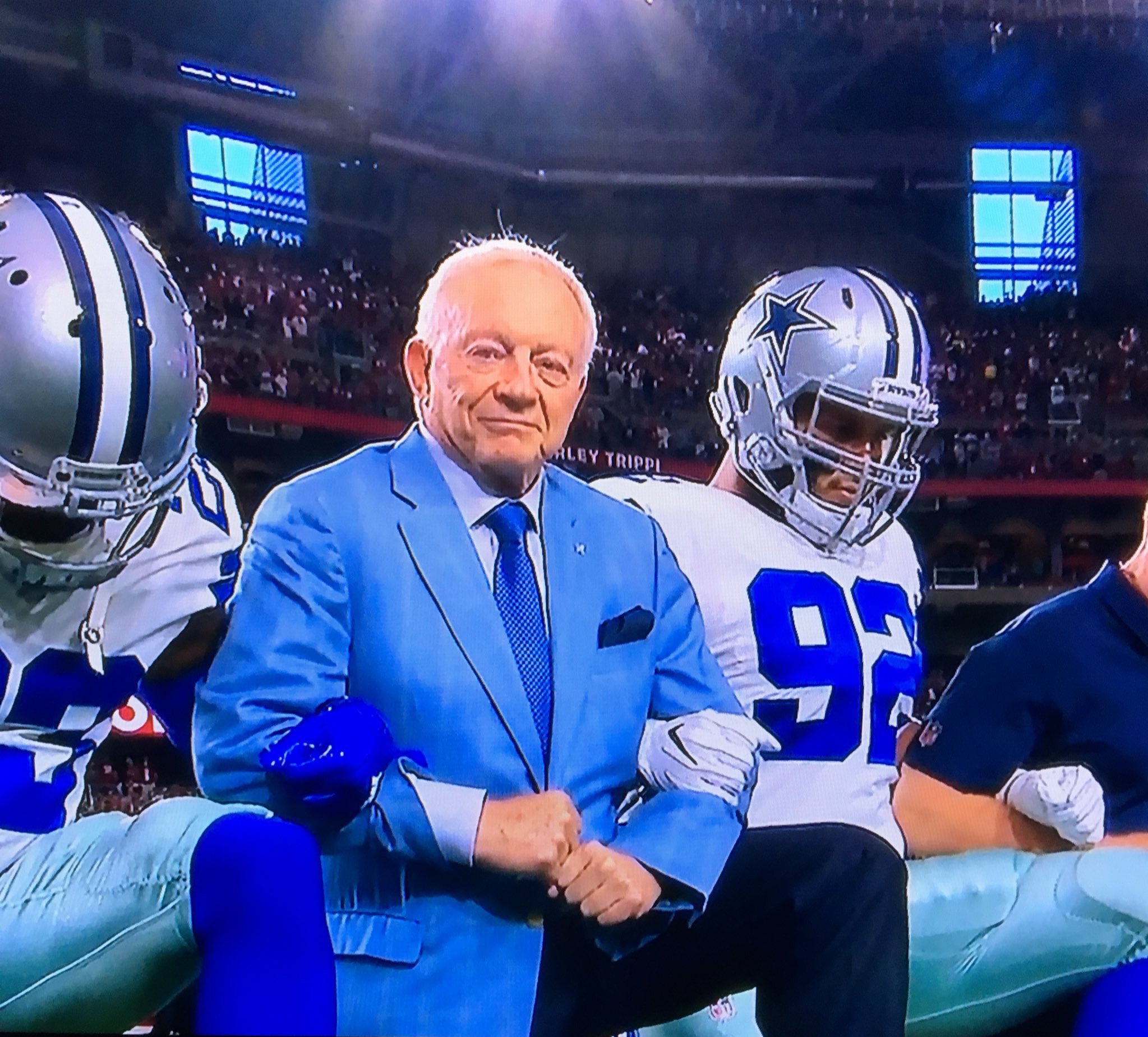 Or are you showing solidarity against President Trump and what he said, his attack on the very NFL, the shield. Because what we know about, above all else, those 32 men, and the commissioner, will protect that NFL shield at all costs, against all foreign and domestic. President Trump had to find that out the hard way. They’ve allowed him to attack so many groups in America. It wasn’t until he came for one of 32, and 1,600 men, and only a handful, only a handful of them, Skip, have ever kneeled in protest.